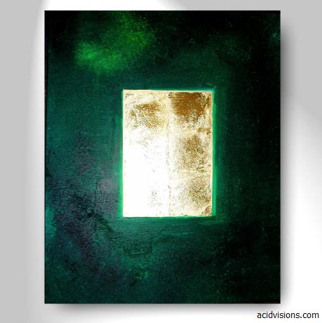 Dieses Gemälde wurde mit einer Auflage aus Kompositionsgold ausgestaltet. Leider läßt sich Gold sehr schwer fotografieren. Es schimmert je nach Lichteinfall unterschiedlich und wirkt auch im Halbdunkel sehr ansprechend und geheimnisvoll. Die außergewöhnliche Farbkomposition harmoniert hervorragend mit der Metallauflage. Die Seiten des Keilrahmens sind bemalt. Im Original sind die Farben wesentlich schöner und von einer großen Intensität und Leuchtkraft. Abhängig vom Gemäldestandort und der jeweiligen Tageszeit bzw. dem Lichteinfall enthüllt das Bild immer wieder neue Facetten seiner Ausstrahlung und Wirkung. Somit verwandelt es auf stimmungsvolle Weise auch die Atmosphäre des Raumes.
