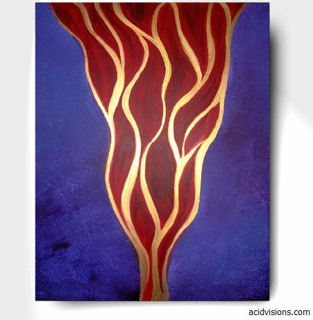 Dieses Gemälde wurde u.a. mit einer außerordentlich hochwertigen Goldfarbe ausgestaltet, welche in Glanz und Ausstrahlung dem echten Blattgold sehr nahe kommt. Leider läßt sich Gold sehr schwer fotografieren. Es schimmert je nach Lichteinfall unterschiedlich und wirkt auch im Halbdunkel sehr ansprechend und geheimnisvoll. Die außergewöhnliche Farbkomposition harmoniert hervorragend mit dem Gold. Die Seiten des Keilrahmens sind bemalt. Im Original sind die Farben wesentlich schöner und von einer großen Intensität und Leuchtkraft. Abhängig vom Gemäldestandort und der jeweiligen Tageszeit bzw. dem Lichteinfall enthüllt das Bild immer wieder neue Facetten seiner Ausstrahlung und Wirkung. Somit verwandelt es auf stimmungsvolle Weise auch die Atmosphäre des Raumes.