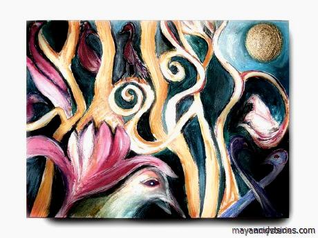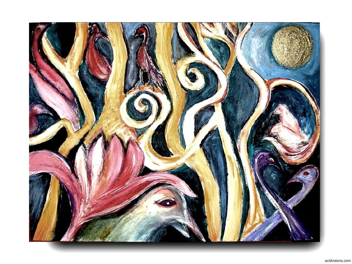 Titel: "Vogelwald" Technik: Acryl auf Canvas Board Kategorie: Malerei Format 40 x 30 cm Anmerkungen: in Privatbesitz